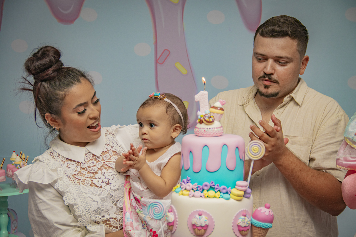 E a pequena confeiteira Íris completou seu 1° aninho de vida com muitos doces e guloseimas.